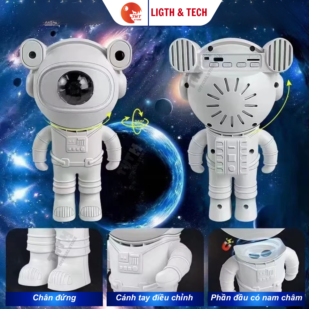 🔄 Đầu phi hành gia xoay 360 độ, dễ dàng điều chỉnh hướng ánh sáng.