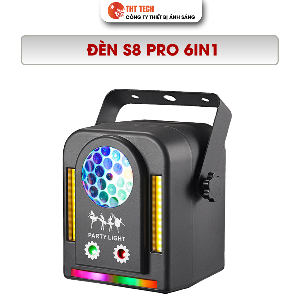 Hiệu ứng 6in1: Kết hợp LED RGB, laser xanh-đỏ, hoa văn ánh sáng, chớp vàng, cảm ứng âm thanh.