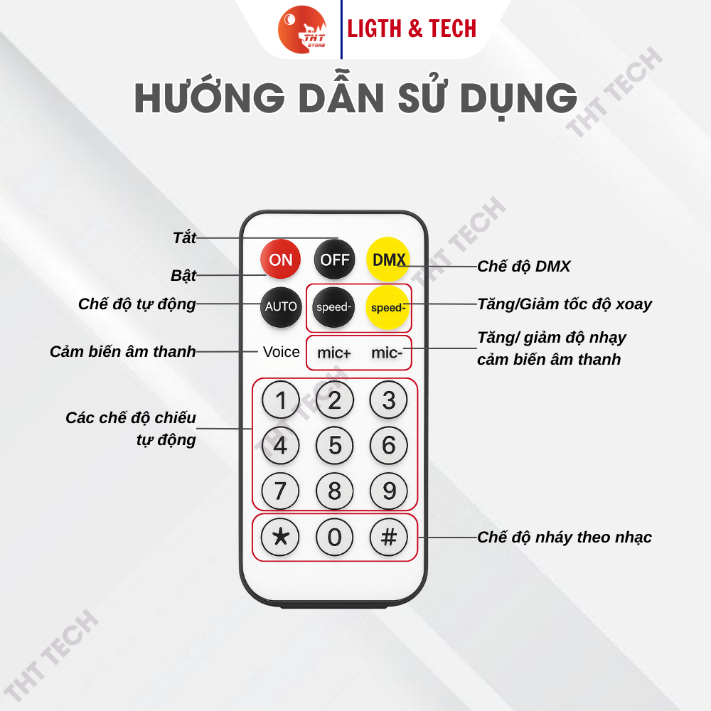 Chế độ điều khiển: Auto / Sound Active / Remote