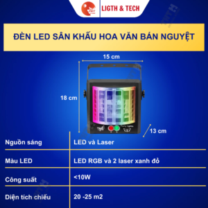 + Hiệu ứng chiếu sáng ấn tượng: Đèn sân khấu LED thế hệ mới kết hợp giữa đèn 15 mắt và 3 mắt, tạo hiệu ứng ánh sáng mạnh mẽ, sắc nét, đặc biệt với các hiệu ứng cánh bướm và laser, phù hợp cho nhiều không gian.