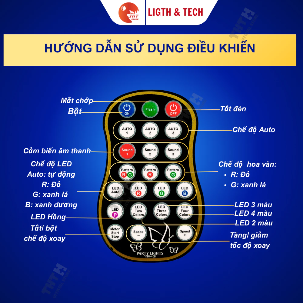 + Cảm ứng âm thanh thông minh: Đèn tự động nháy theo điệu nhạc, tạo không khí sôi động và hấp dẫn cho mọi sự kiện, từ các bữa tiệc gia đình đến các quán bar, vũ trường.