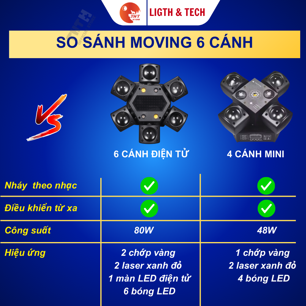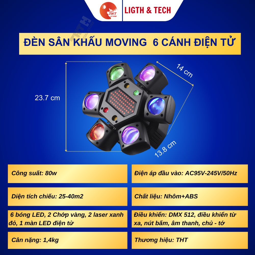 Đèn Sân Khấu Moving 6 Cánh Điện Tử THT Light & Tech đèn sân khấu DJ, đèn bay phòng đèn karaoke, quán bar, tiệc cưới