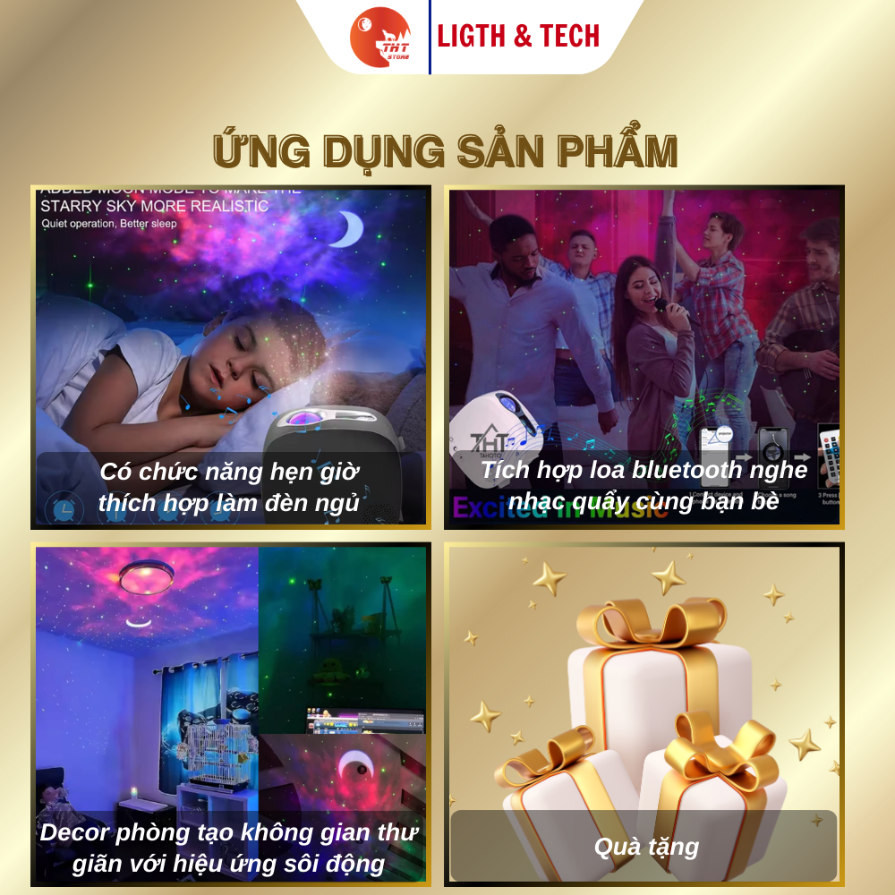 – Quà tặng cho gia đình và trẻ nhỏ : Đèn ngủ chiếu bầu trời đầy sao thích hợp cho sinh nhật, tiệc tùng, tiệc cưới, trang trí phòng, quà tặng ngày thiếu nhi, lễ giáng sinh, kỷ niệm. Tạo ra một bầu không khí lý tưởng và đầy sao và giúp trẻ kích thích trí tò mò, trí tưởng tượng và sự sáng tạo.